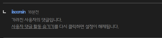 바로 사용자 ID를 누른 후 해당 사용자를 가릴 수 있다는 것입니다.